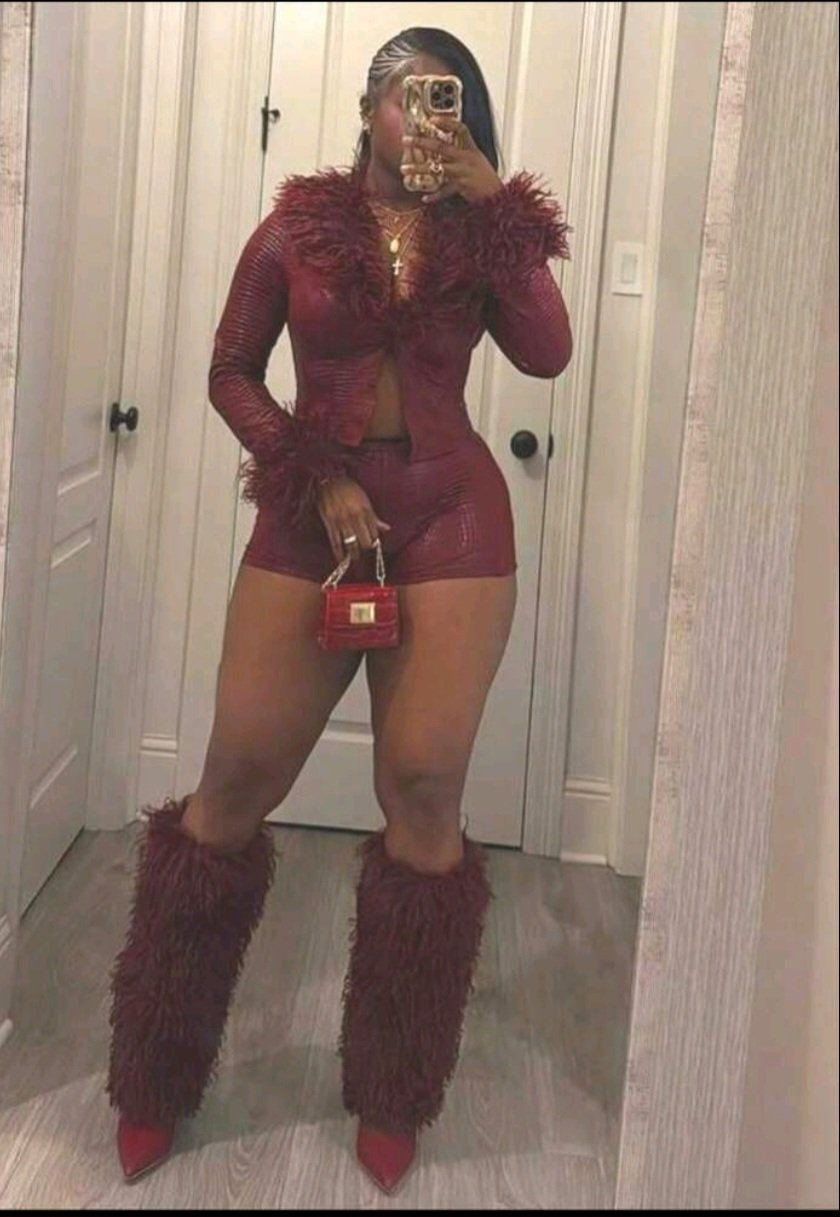 Women Fuzzy Faux Leather Snake Print Set Women Long Sleeve Elastic Shorts Casual