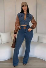 New Denim Suit With Faux Leather Sleeves | Cropped Silhouette + Flared Jeans | A Must-Have For Fashion Sharing And City Walks