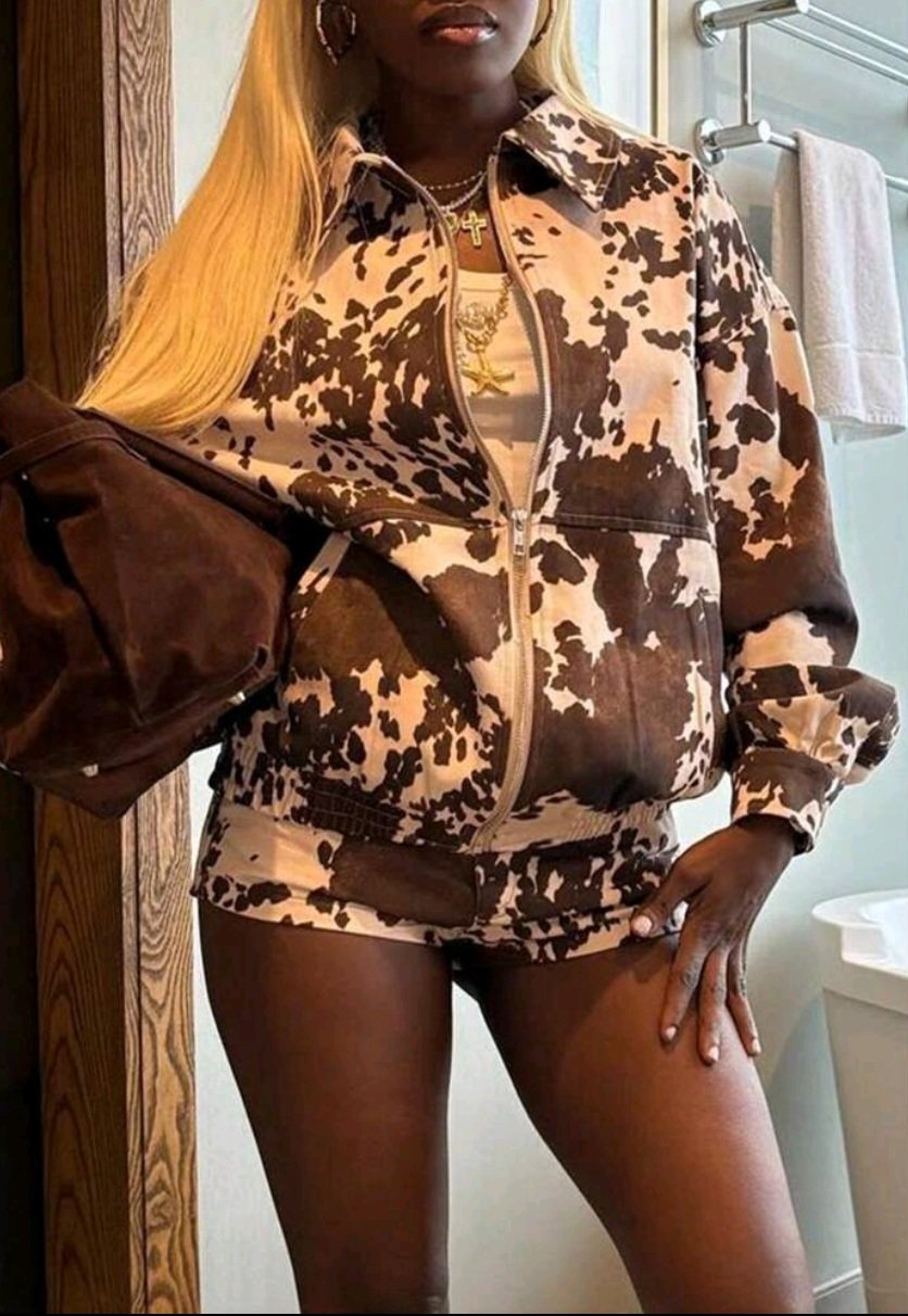 Fit Y2K Jacket With Zipper And Cuffed Sleeves And Matching Shorts