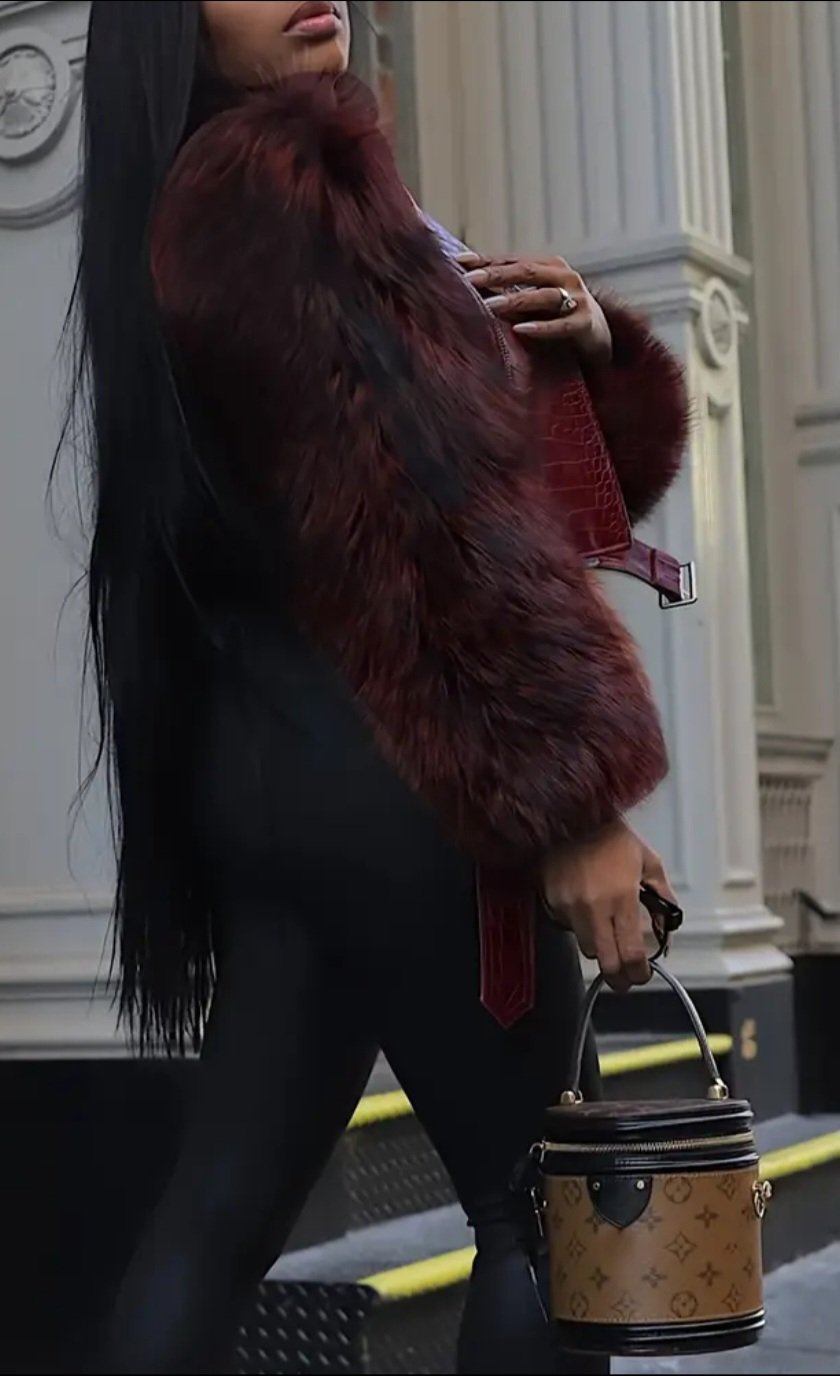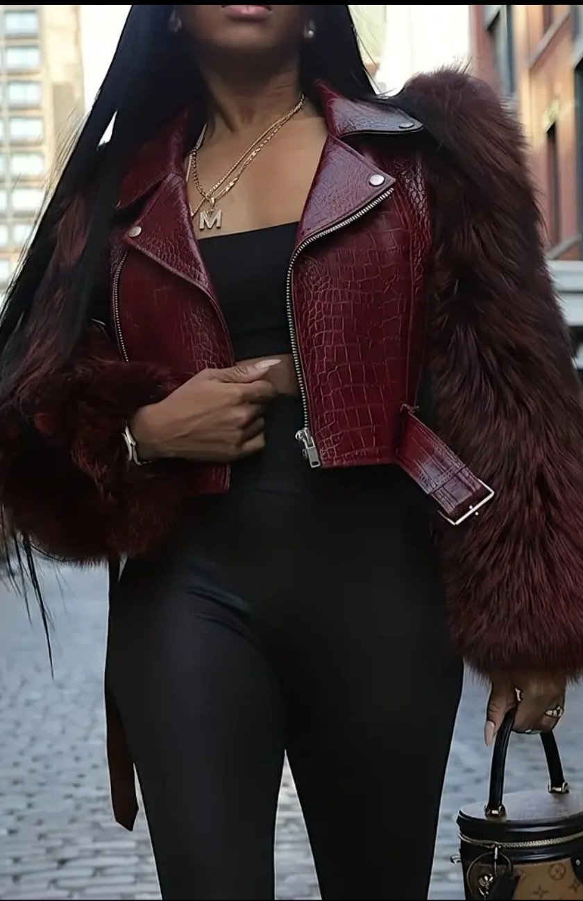 Stylish Cozy, Short Faux Leather Jacket for Women with Fluffy Details - Perfect for Autumn and Winter.